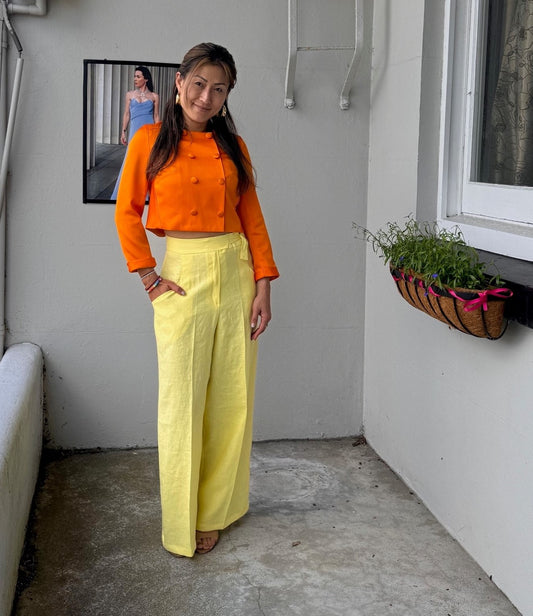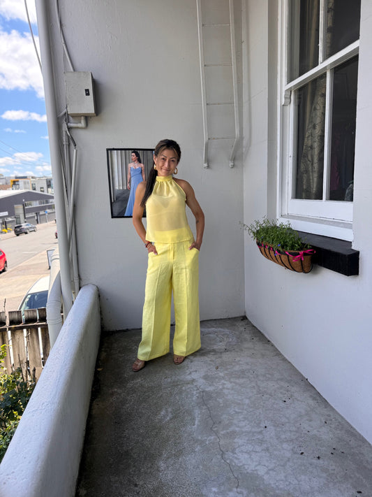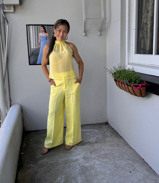 ALL NEW SEASON LEMONADE LINEN WIDE LEG PANTS WITH ADJUSTABLE SLIDE BELT.