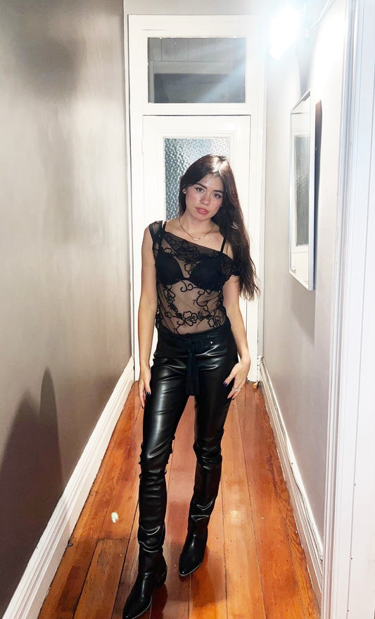 Chrystal Sloane Couture Autumn Black Faux Leather Cigarette Slim pants