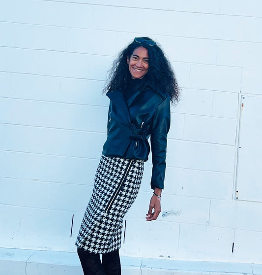 Chrystal Sloane Couture Black & Cream Herringbone Wrap over zip front skirt