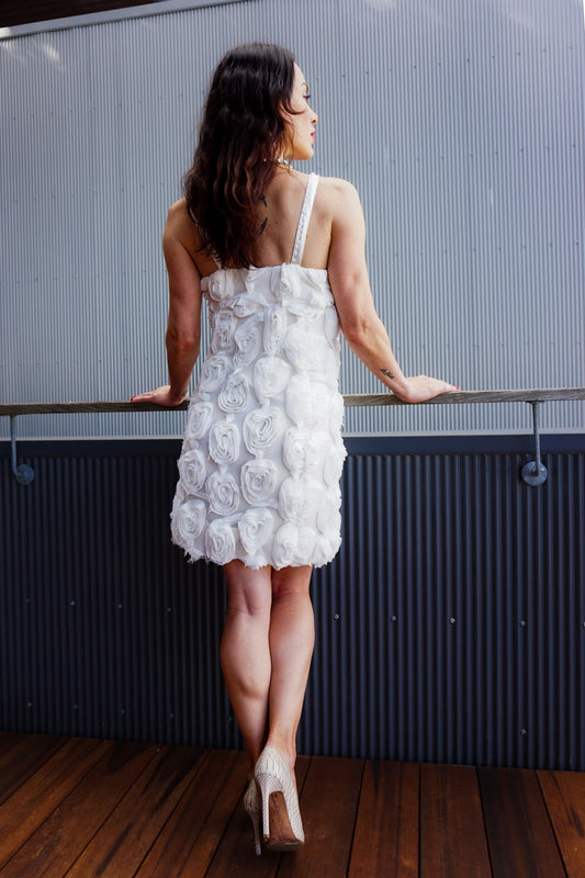 Chrystal Sloane Off White Appliqued Roses Cocktail Dress.