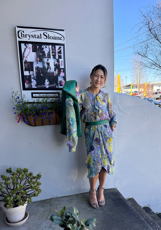 Chrystal Sloane Couture Liberty Print Silk Blouse with ruffle front.