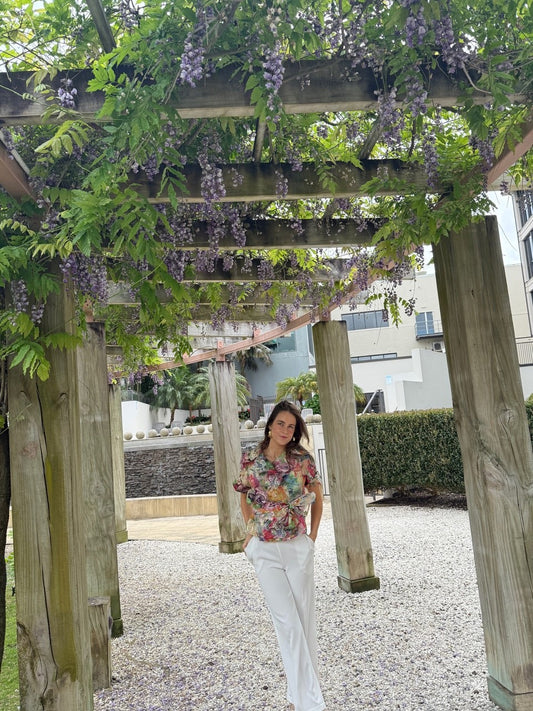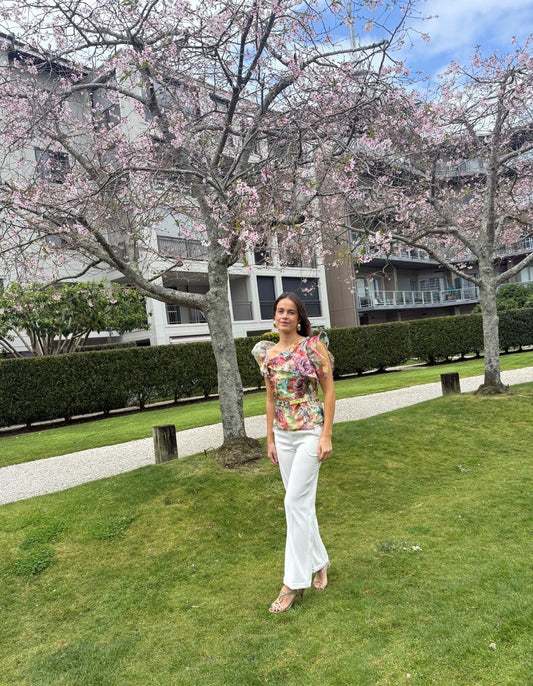 Chrystal Sloane Couture Embroidered Floral Organza Top with ruffled sleeves