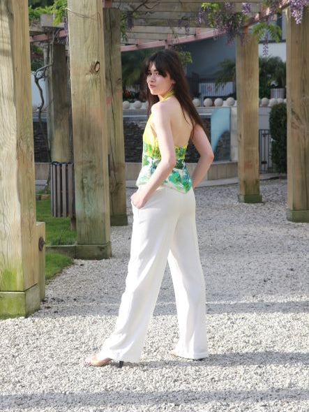 Citrus Silk De Chine Floral Halter neck top with shaped peplum ( lined with voile).