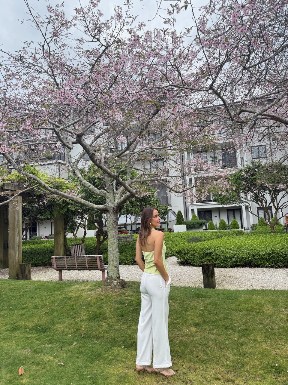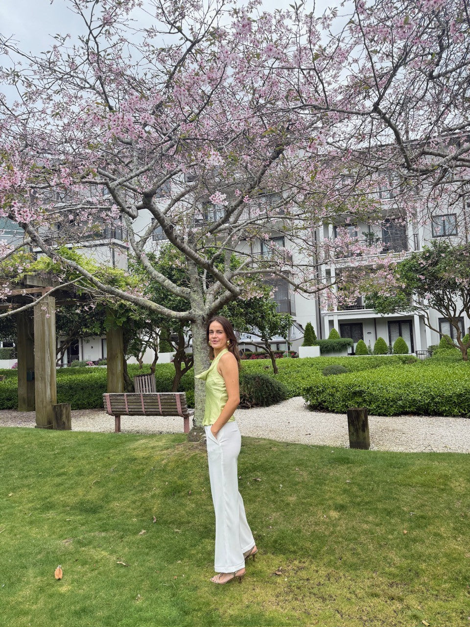 Chrystal Sloane Couture Apple Green Crinkle Satin bias cut halter neck top drawn in with fine elastic across the back.