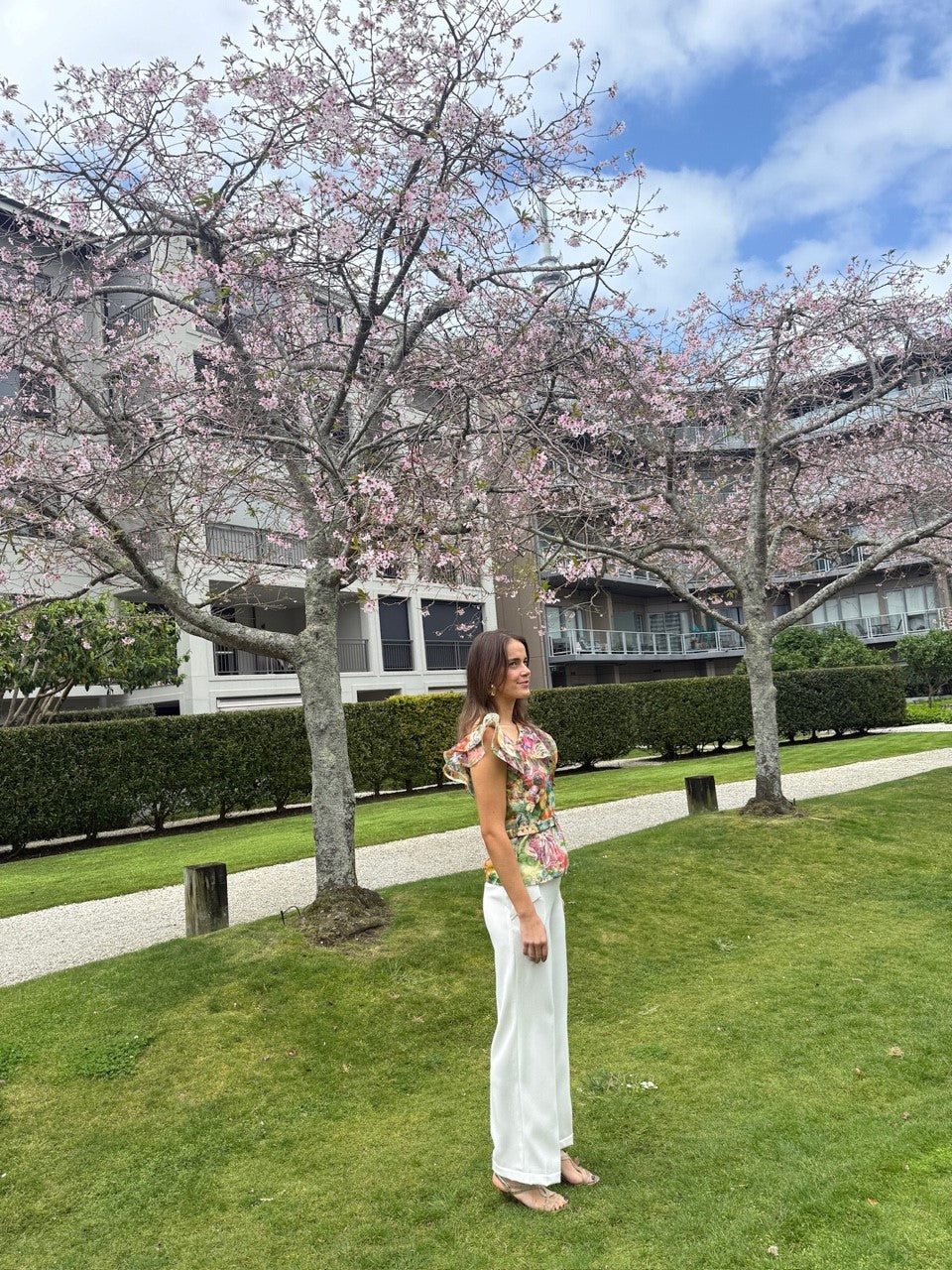 Chrystal Sloane Couture Embroidered Floral Organza Top with ruffled sleeves