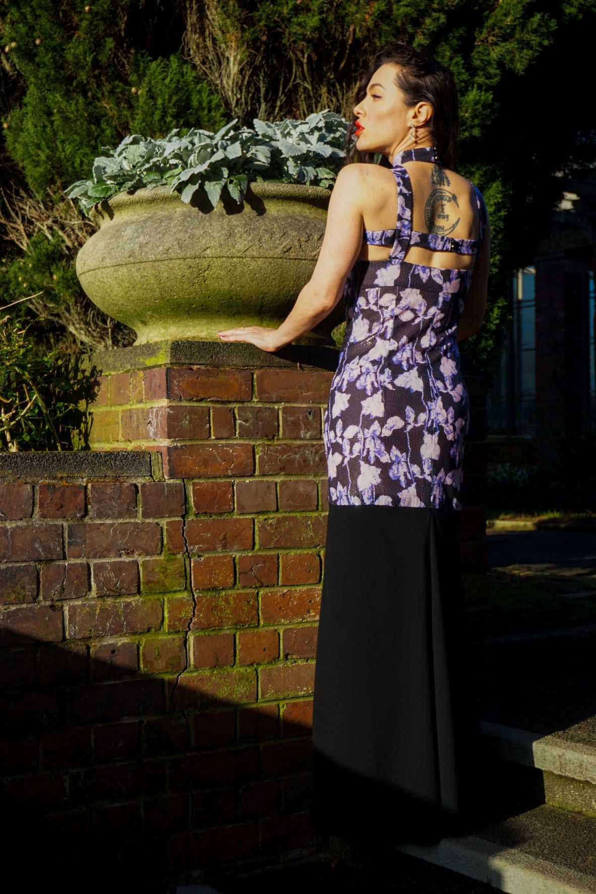 Chrystal Sloane Couture Lilac and Purple Sequined Evening gown with plaited crossover front and skirt with centre front split. ( Fully Lined ). Fits like a glove and feels fantastic to wear.