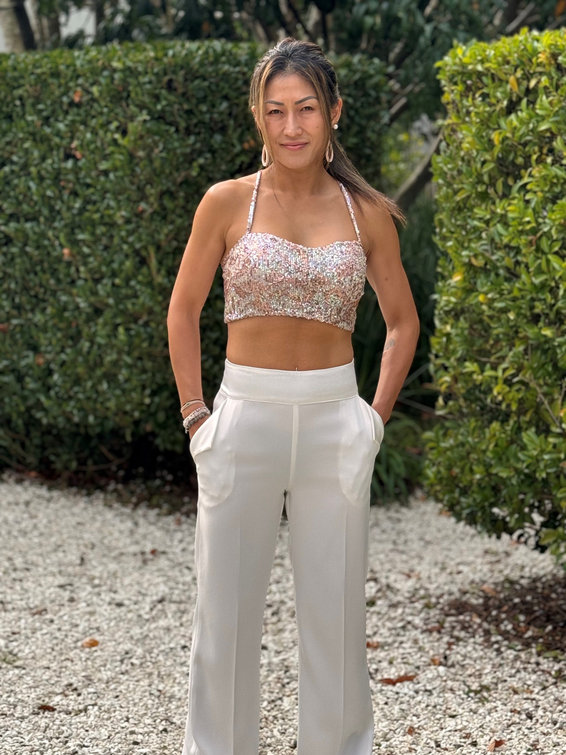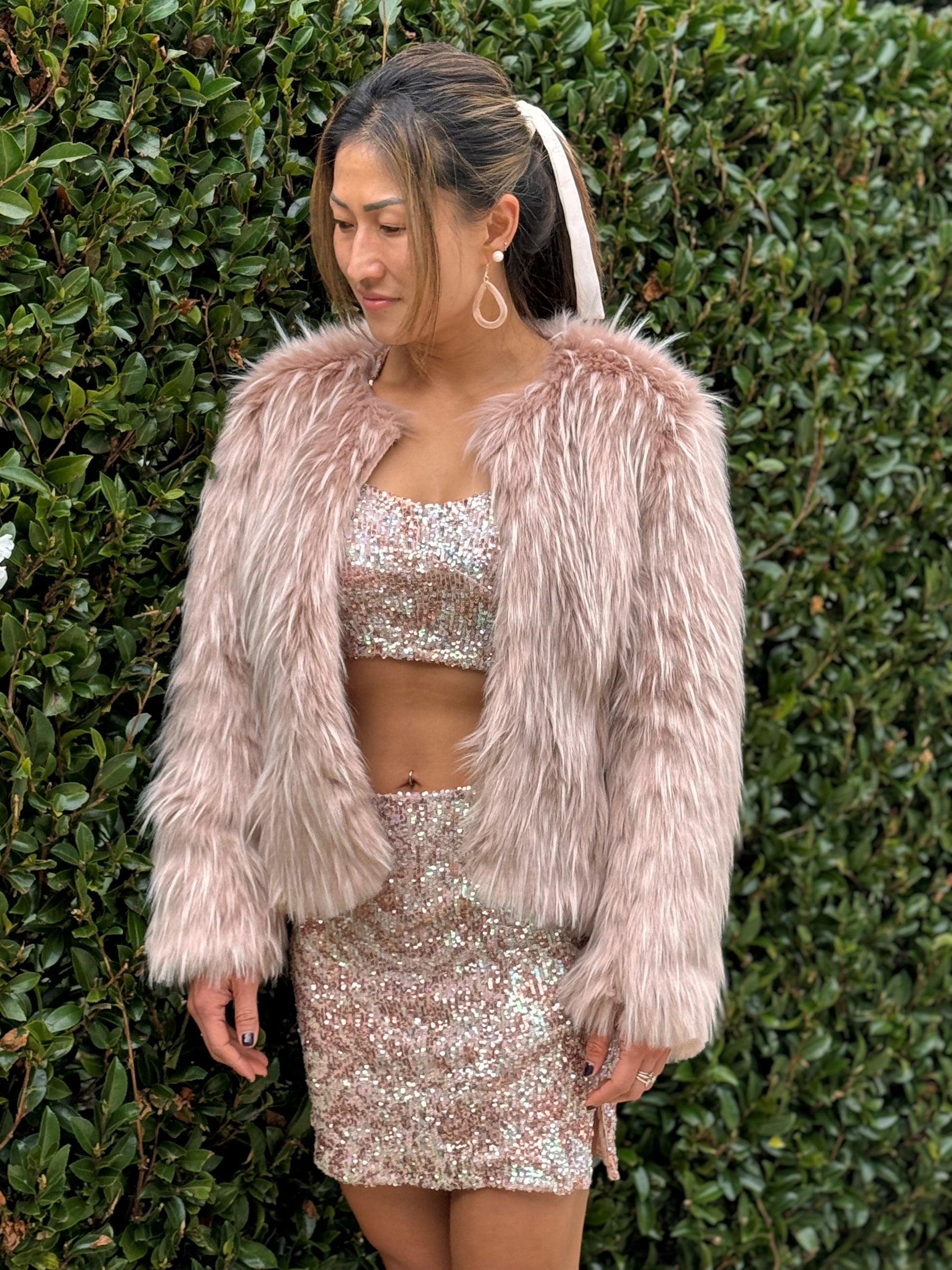 Chrystal Sloane Couture New Season Peach & Bronze Stretch Sequin Bustier & Skirt