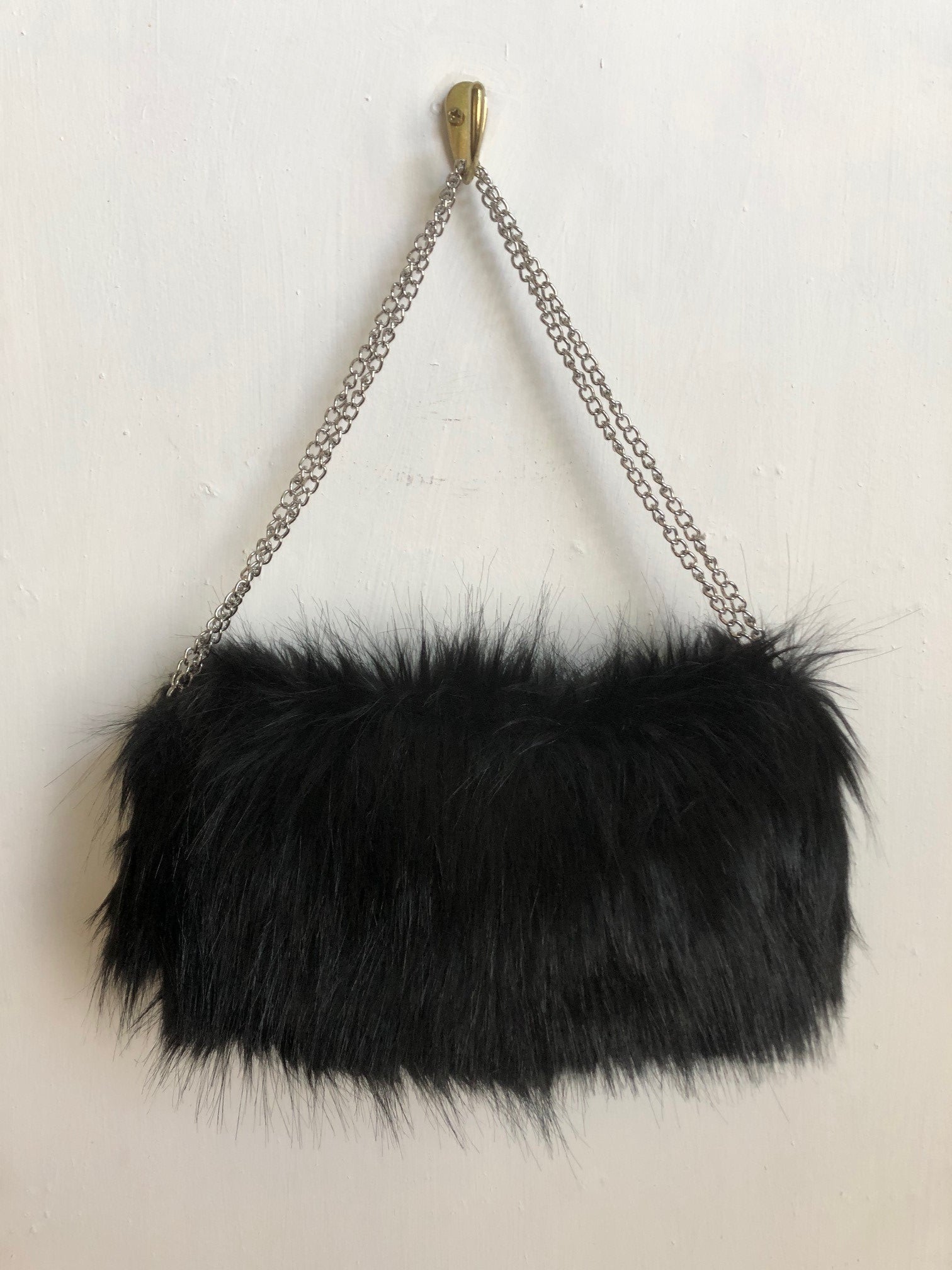 Have fun with the new sleek black faux fur evening bag with a silk velvet lining. Perfect with your favourite cocktail dress on a romantic date.