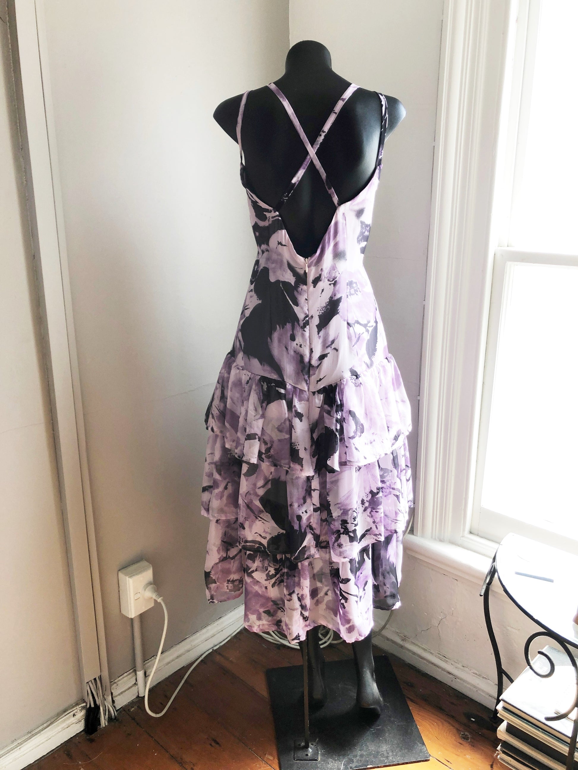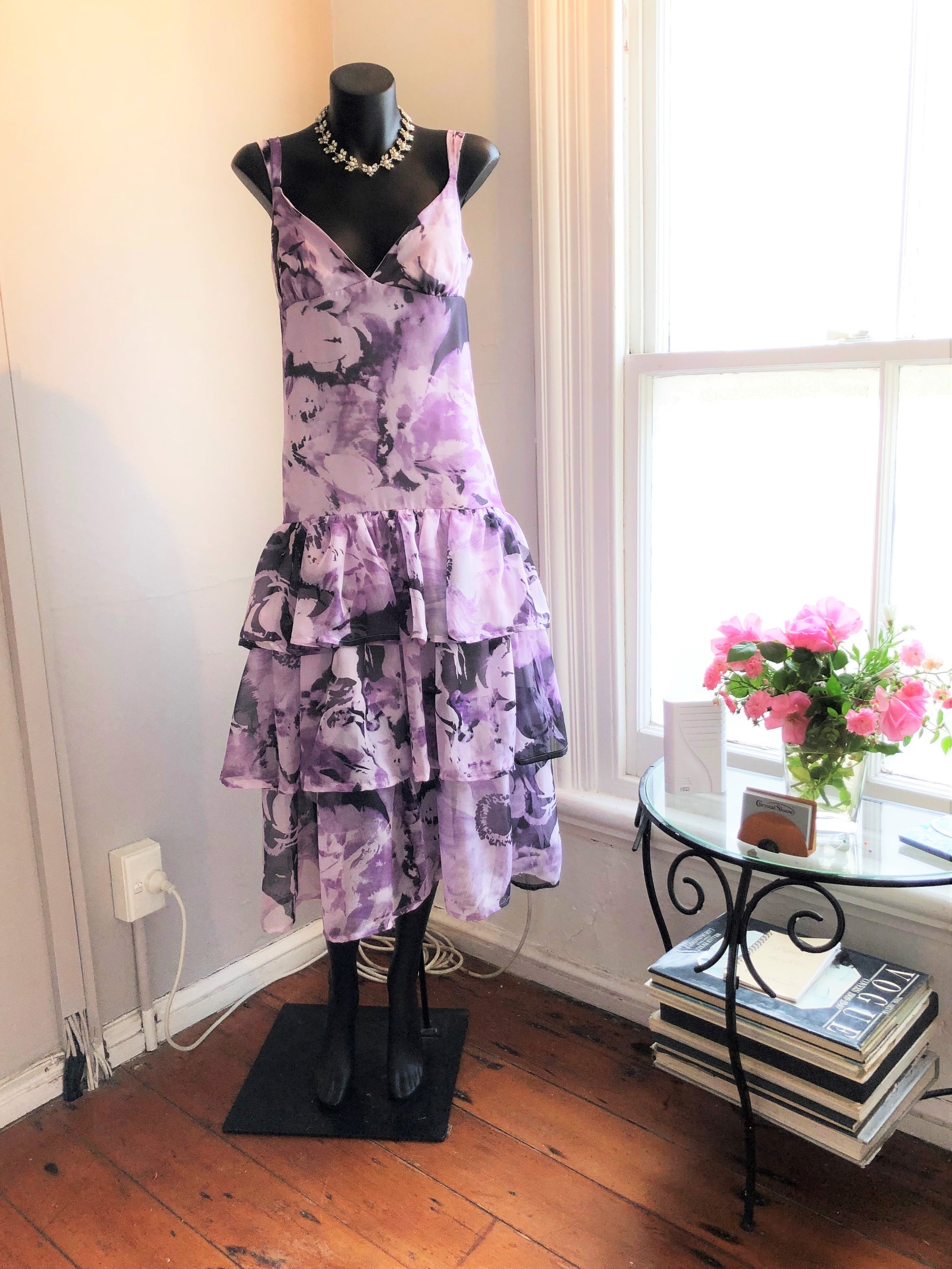 Chrystal Sloane Lilac and Purple Silk Floral 3 tier sundress.